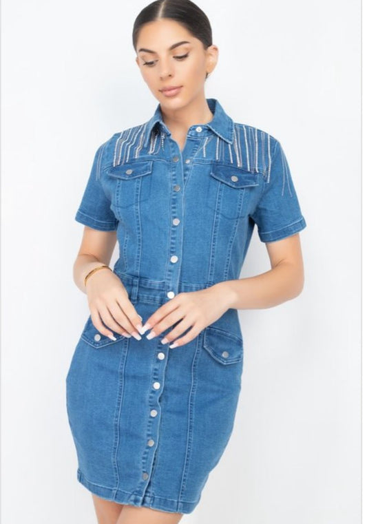 bedazzled denim dress